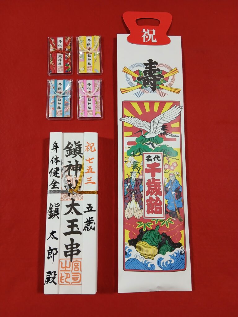 ご祈祷後、御札・子供守・紅白の千歳あめをお渡ししております。